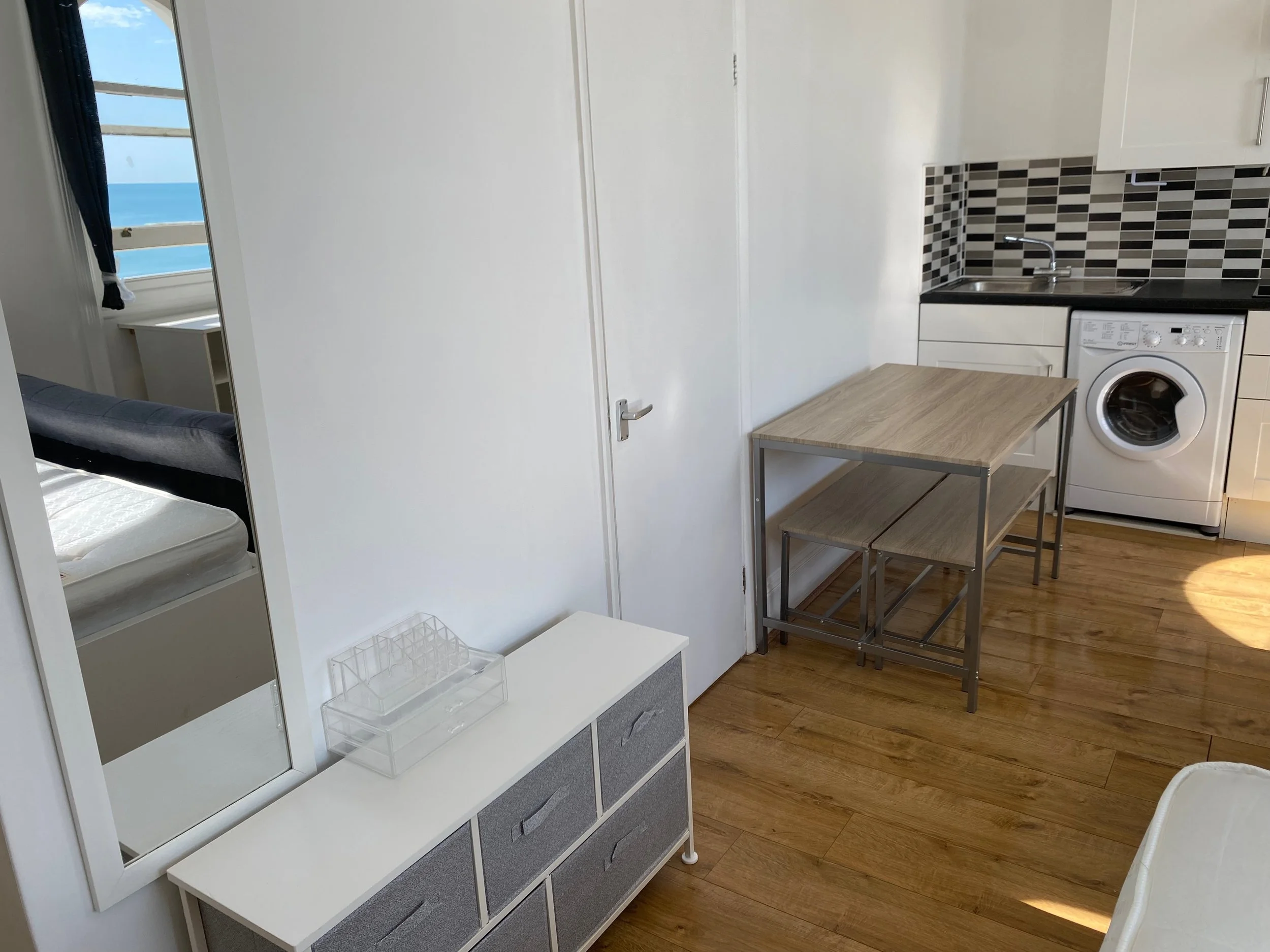 Kitchen features a washer/dryer, oven, microwave, hob, fridge/freezer, and plenty of storage.