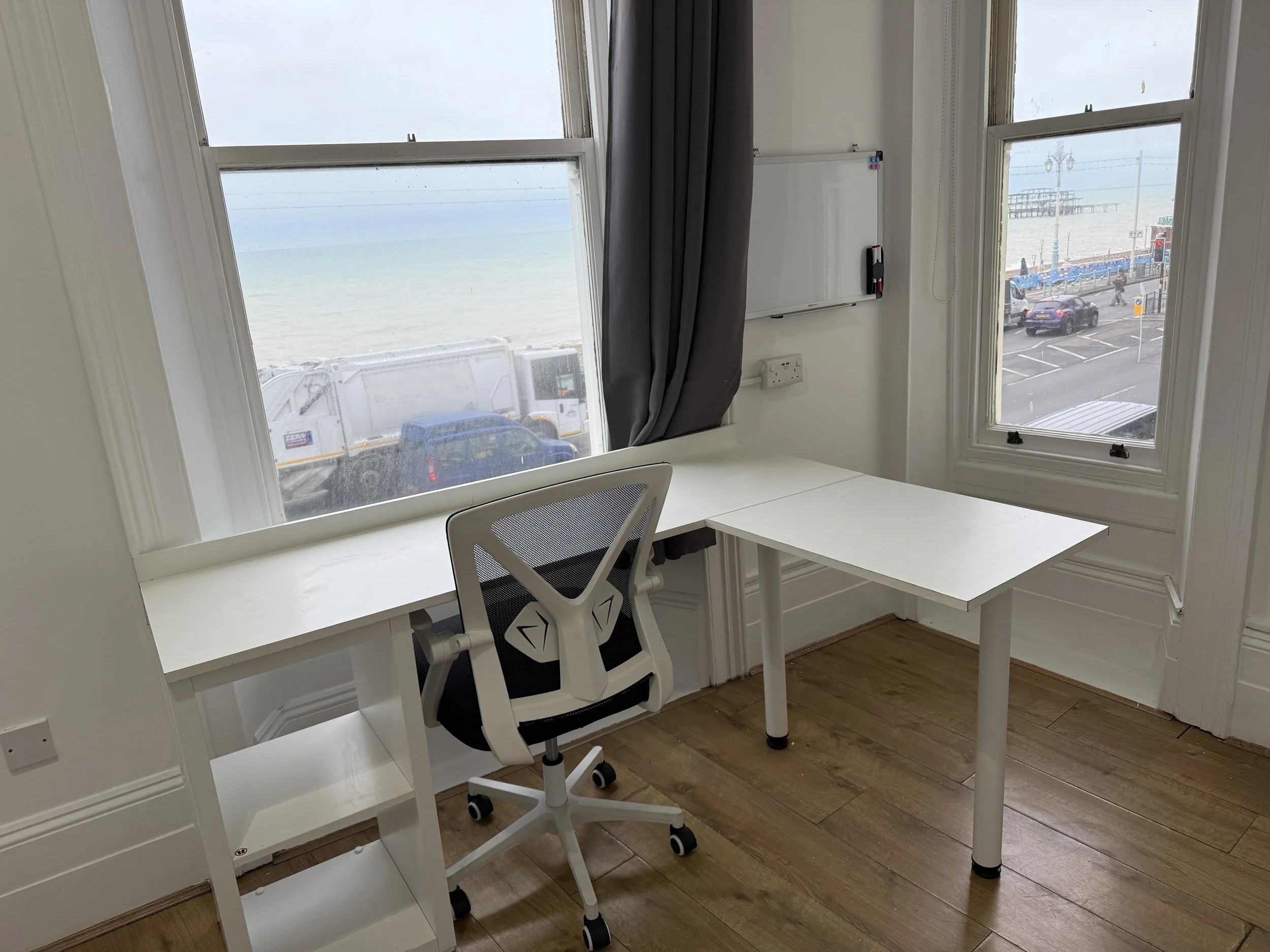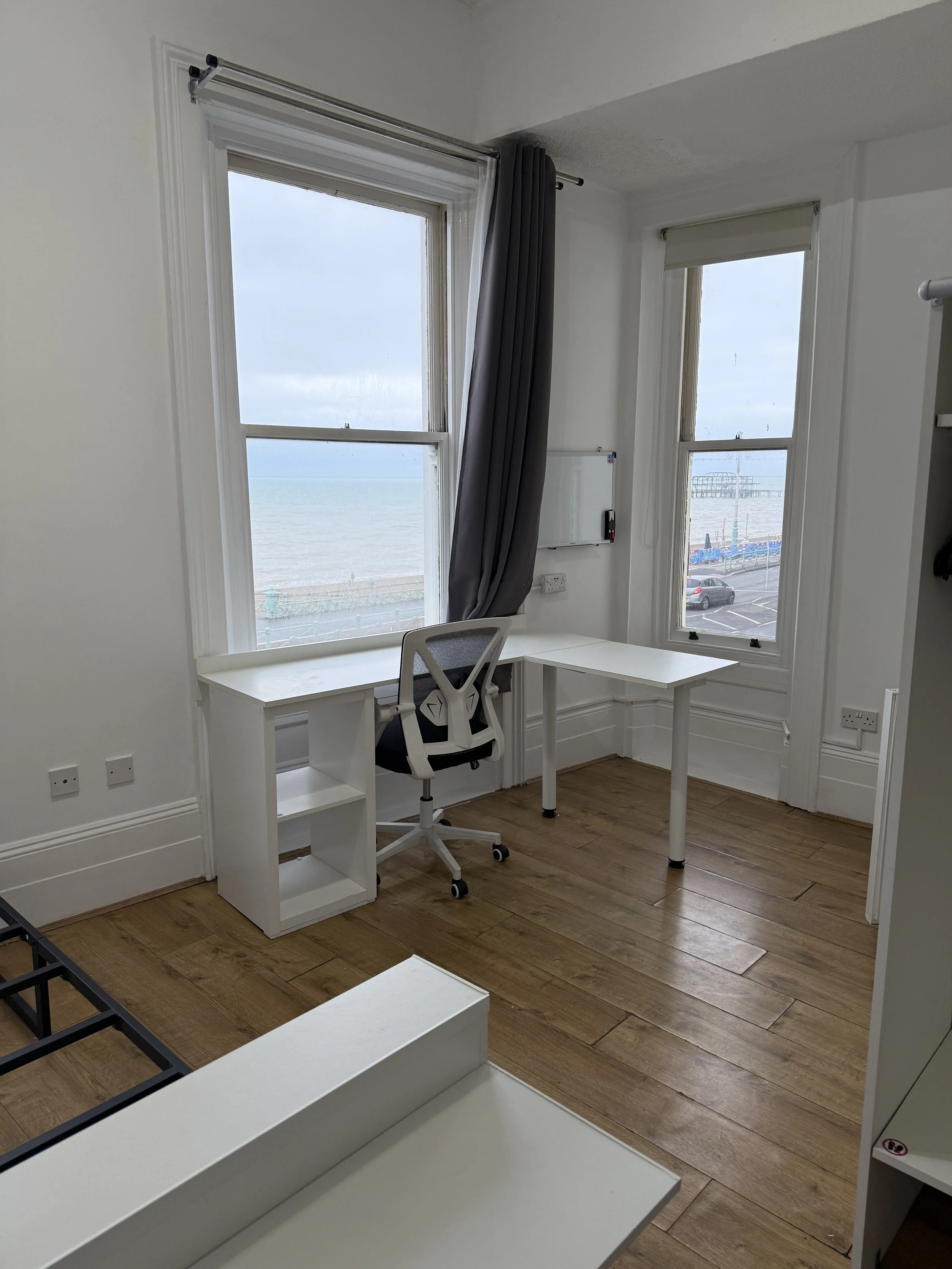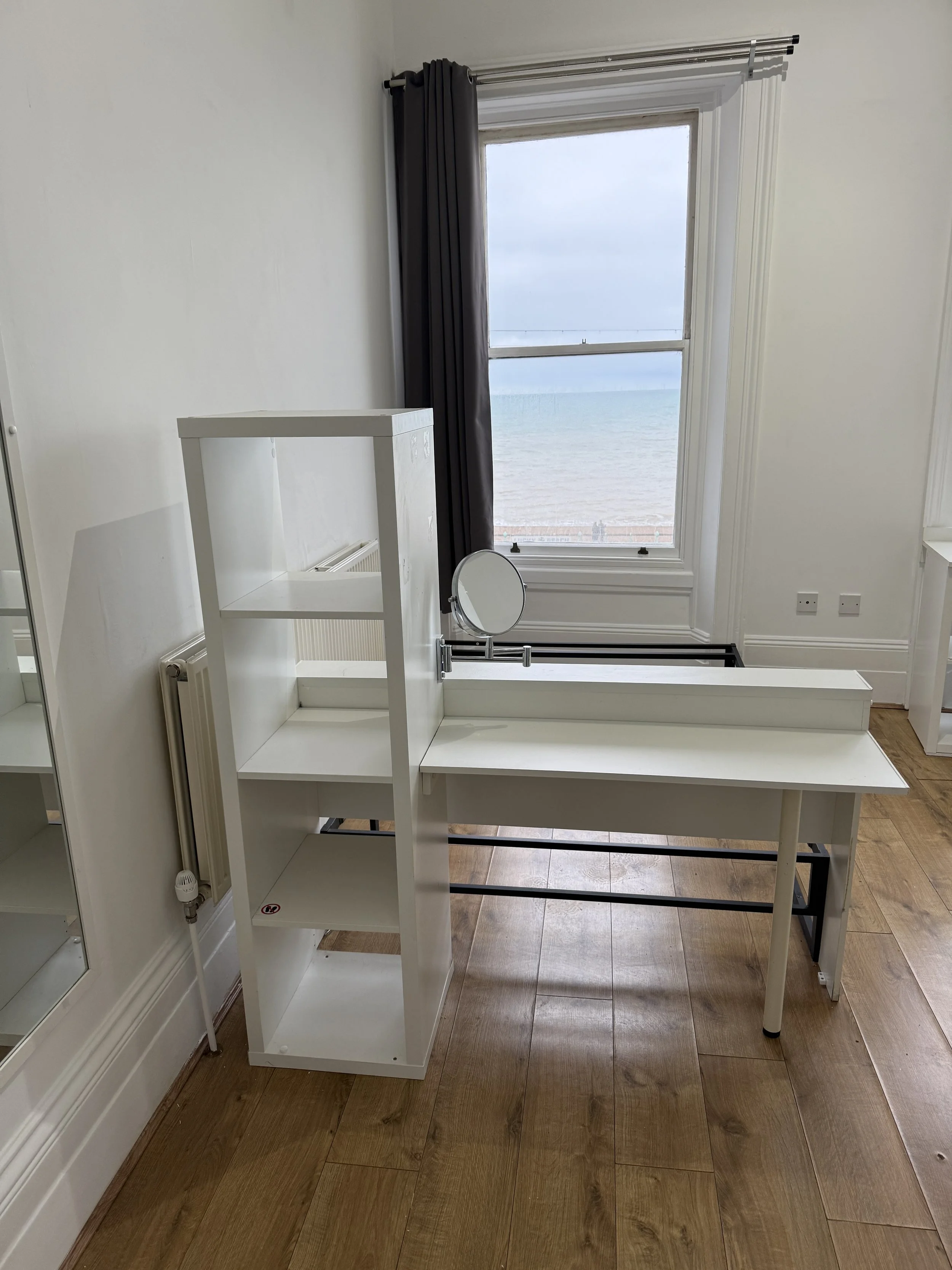 Lounge includes a double bed, double, a large fitted desk with chair and USB sockets and a dressing table with makeup mirror.